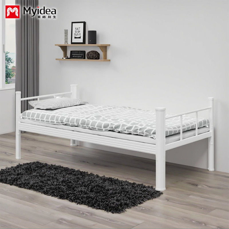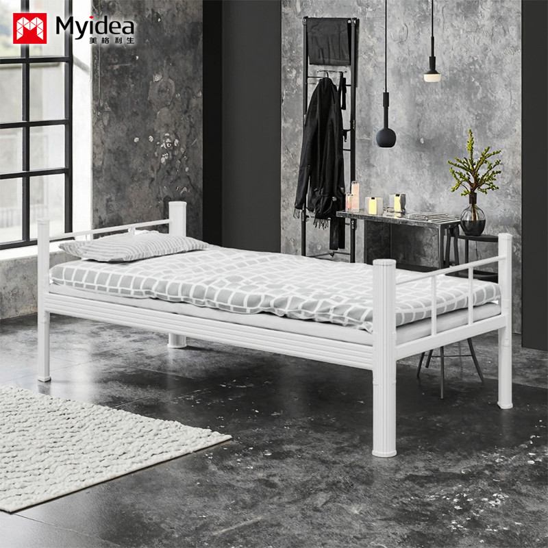Prosty pokój mieszkalny, pojedyncze łóżko, gruba nowoczesna technologia, studentskie sypialnie, jednowarstwowe łóżko z żelazną ramą