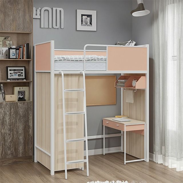 Łóżko, stolik, łóżko uniwersyteckie, łóżko mieszane, łóżko mieszane ze stali i drewna, łóżko wysokie i niskie