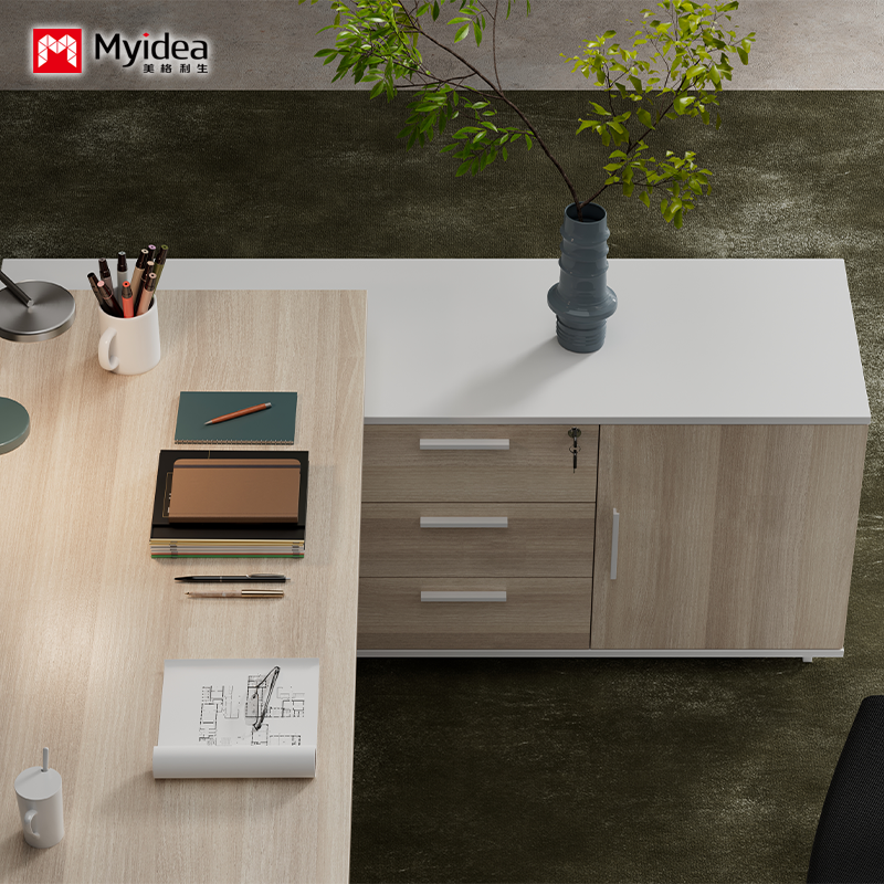 nowoczesne biurko menedżerskie do niezależnego biura, duże biurko dla przełożonego, szafka do przechowywania, design wzmacniający atmosferę w biurze