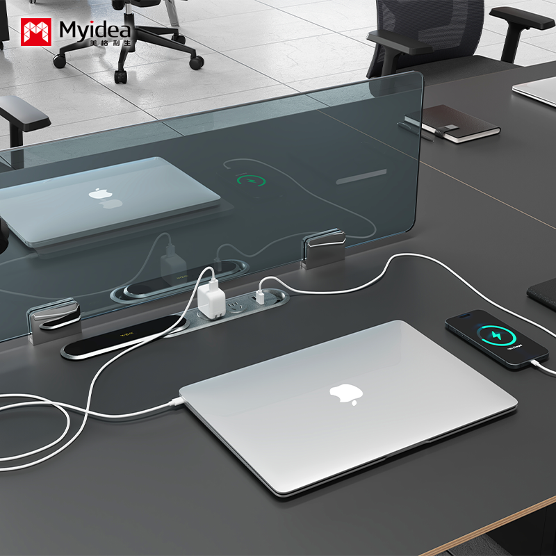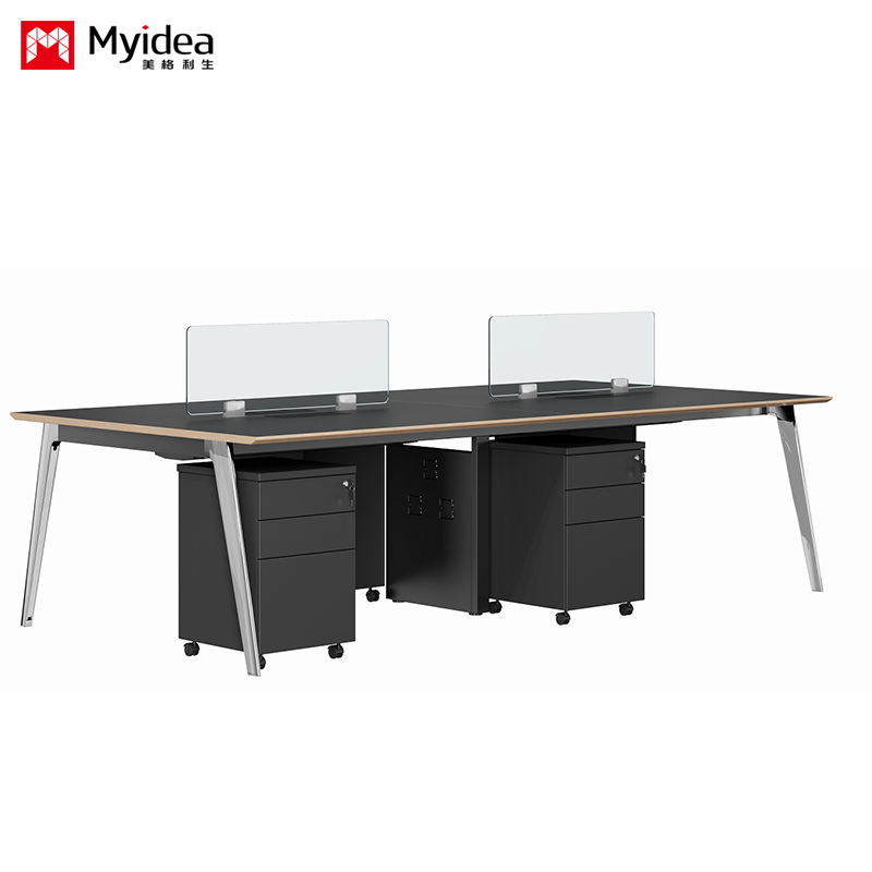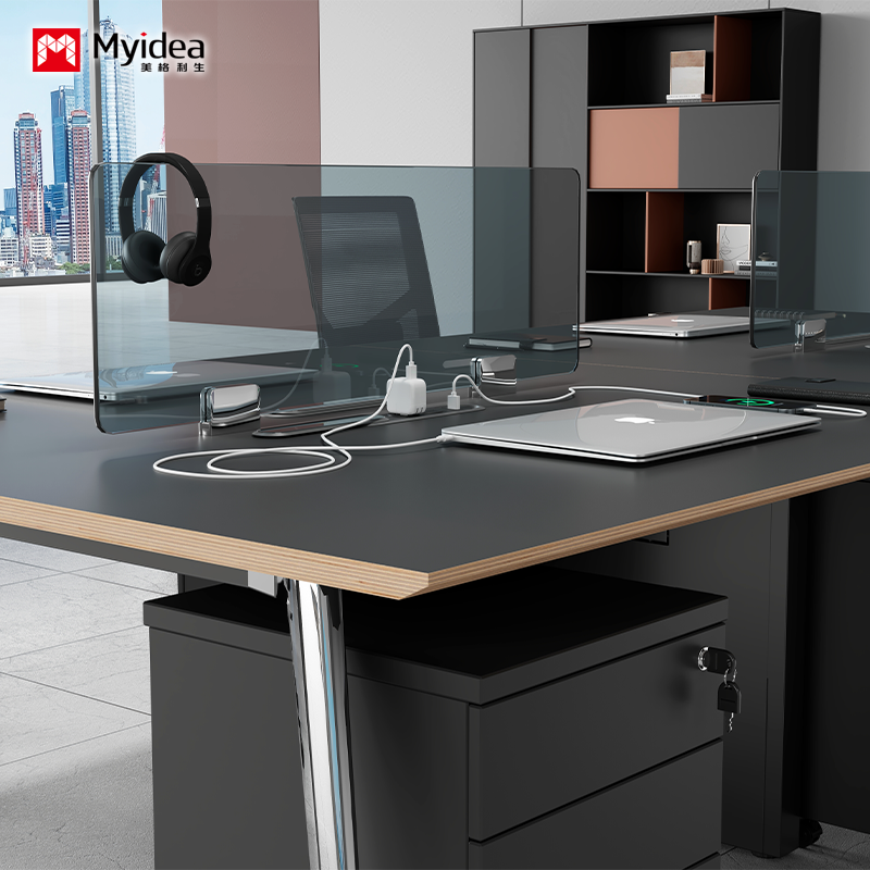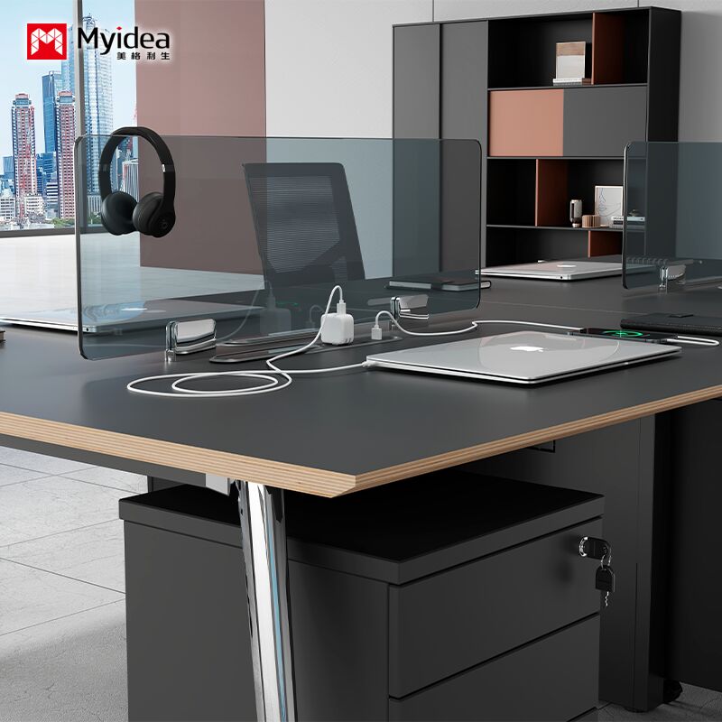 Personalizacja Stolik pracowników jest prosty i nowoczesny, z 4 ręcznymi stanowiskami roboczymi, Stolik jest elegancki i praktyczny, z ekranem