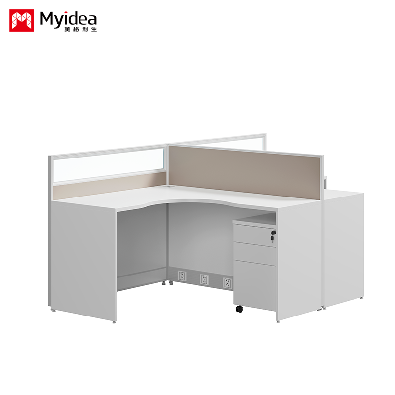Foshan hurtowy pojedyncza osoba w kształcie litery L pracownicy światło kolorowy slot karty ekranu prosty nowoczesny kombinacja ekranu stołu i krzesła