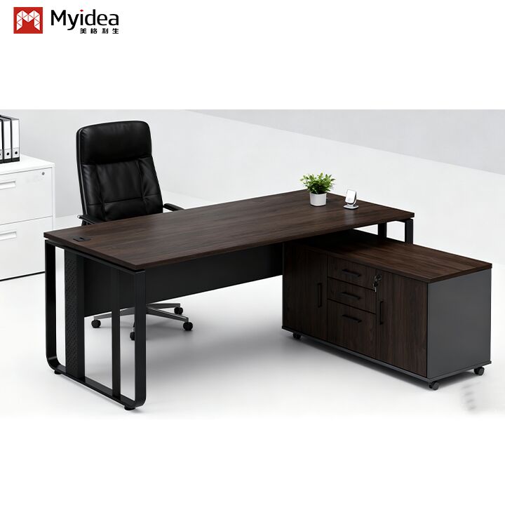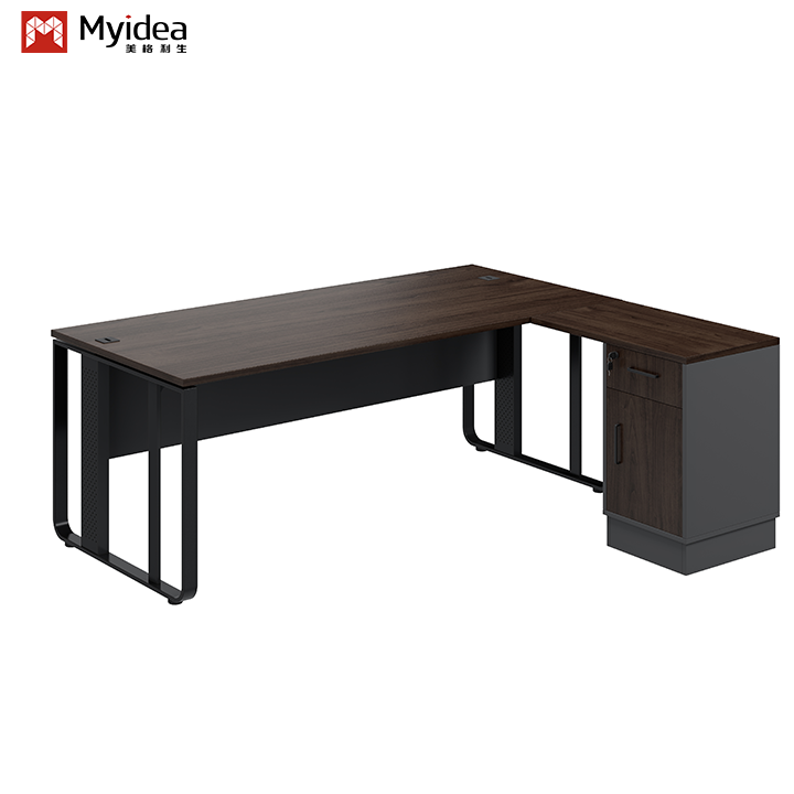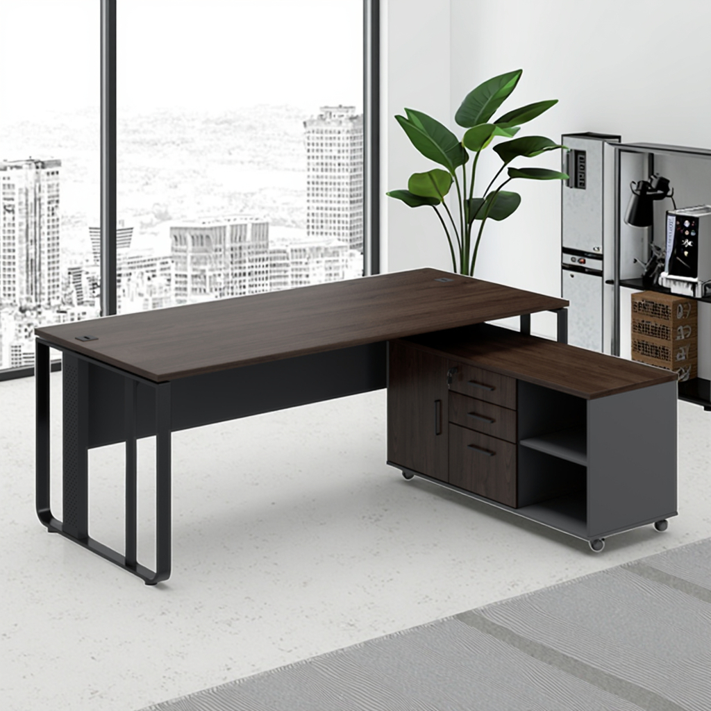 Współczesne biurko szefa luksusowego z konstrukcją o stalowych nogach i kabinetem do przechowywania w budynku biurowym
